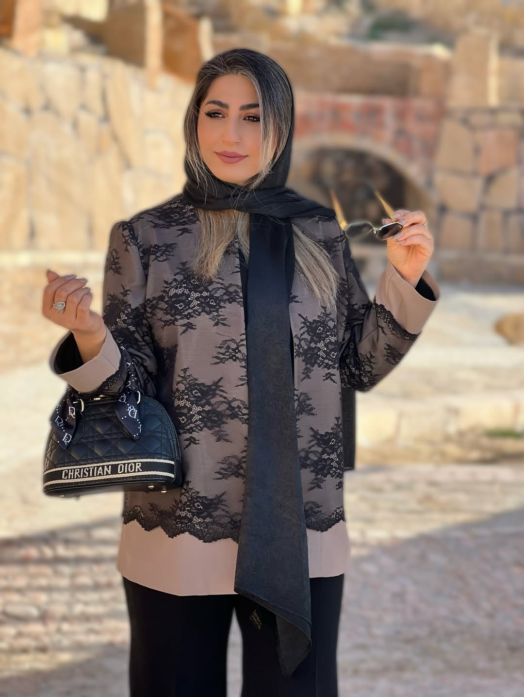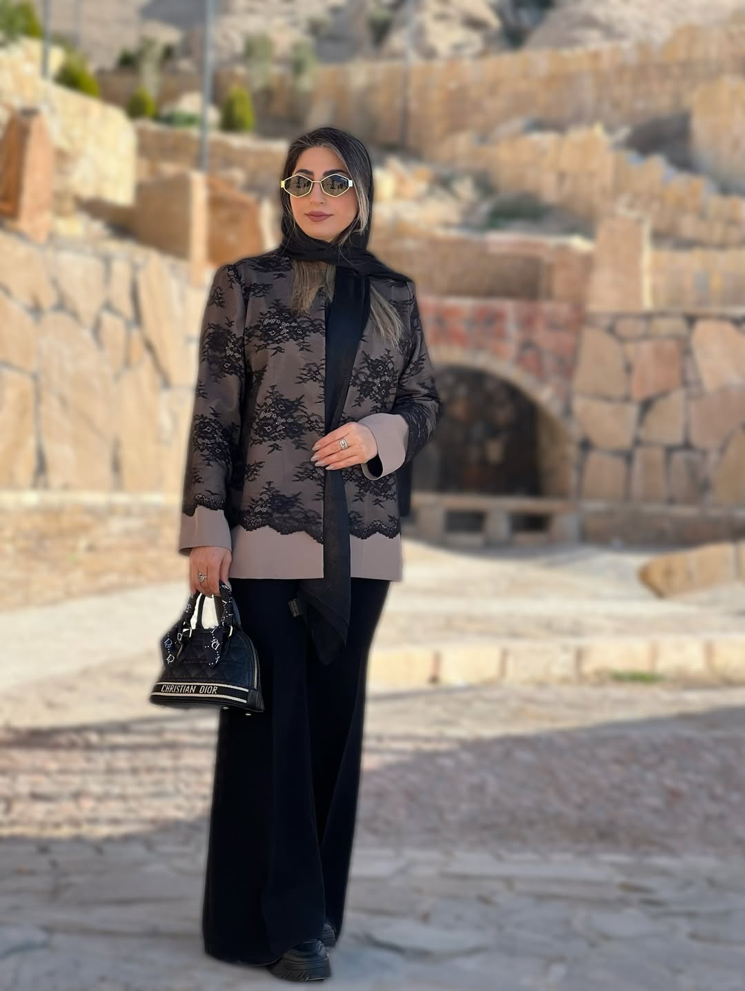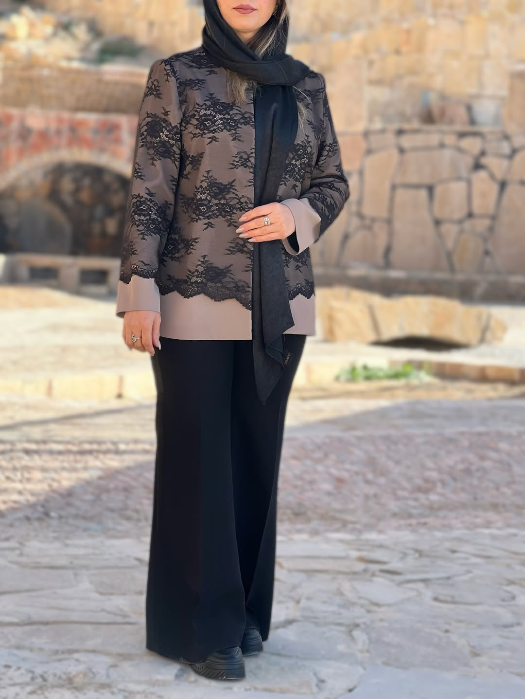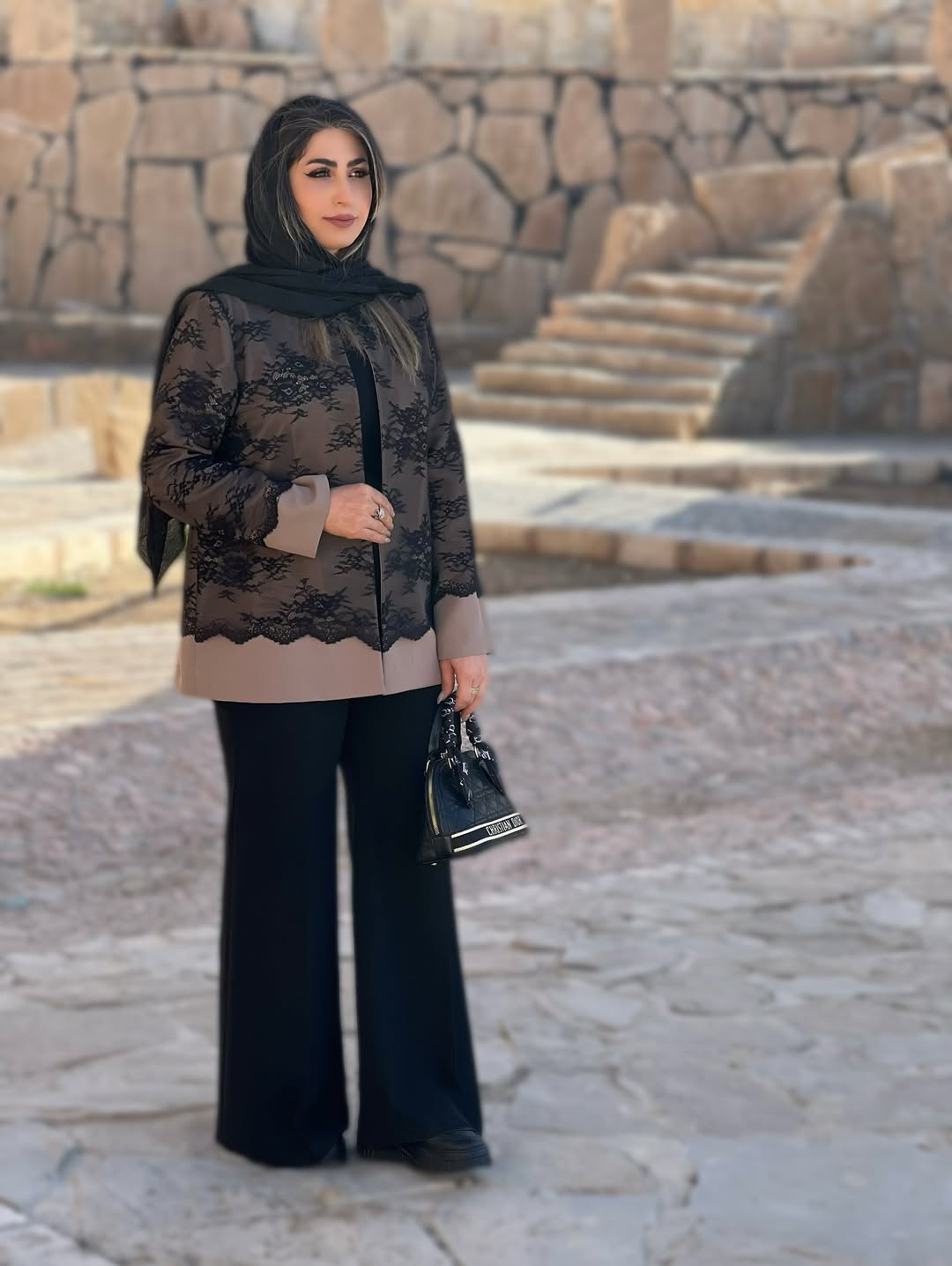 کت زنانه مجلسی جنس دانتل فرانسه و کرپ گرم بالا تک رنگ