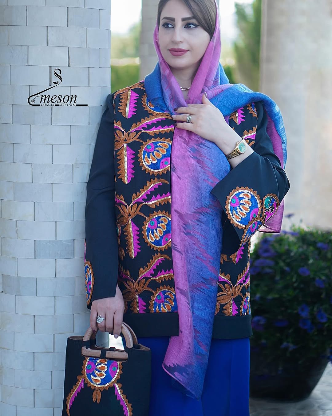 کت مجلسی زنانه سوزندوز هندی به همراه کیف تک رنگ مشکی